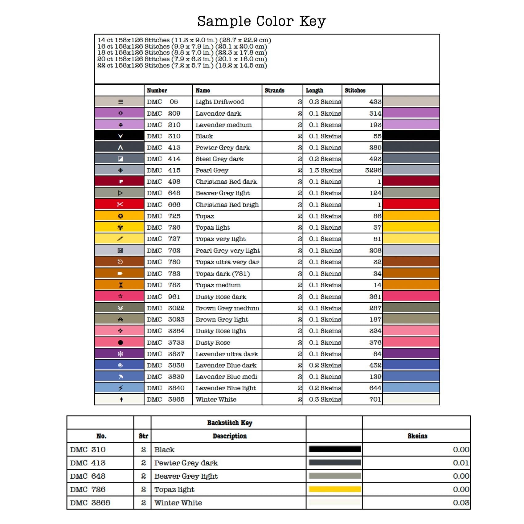 - DMC color legend