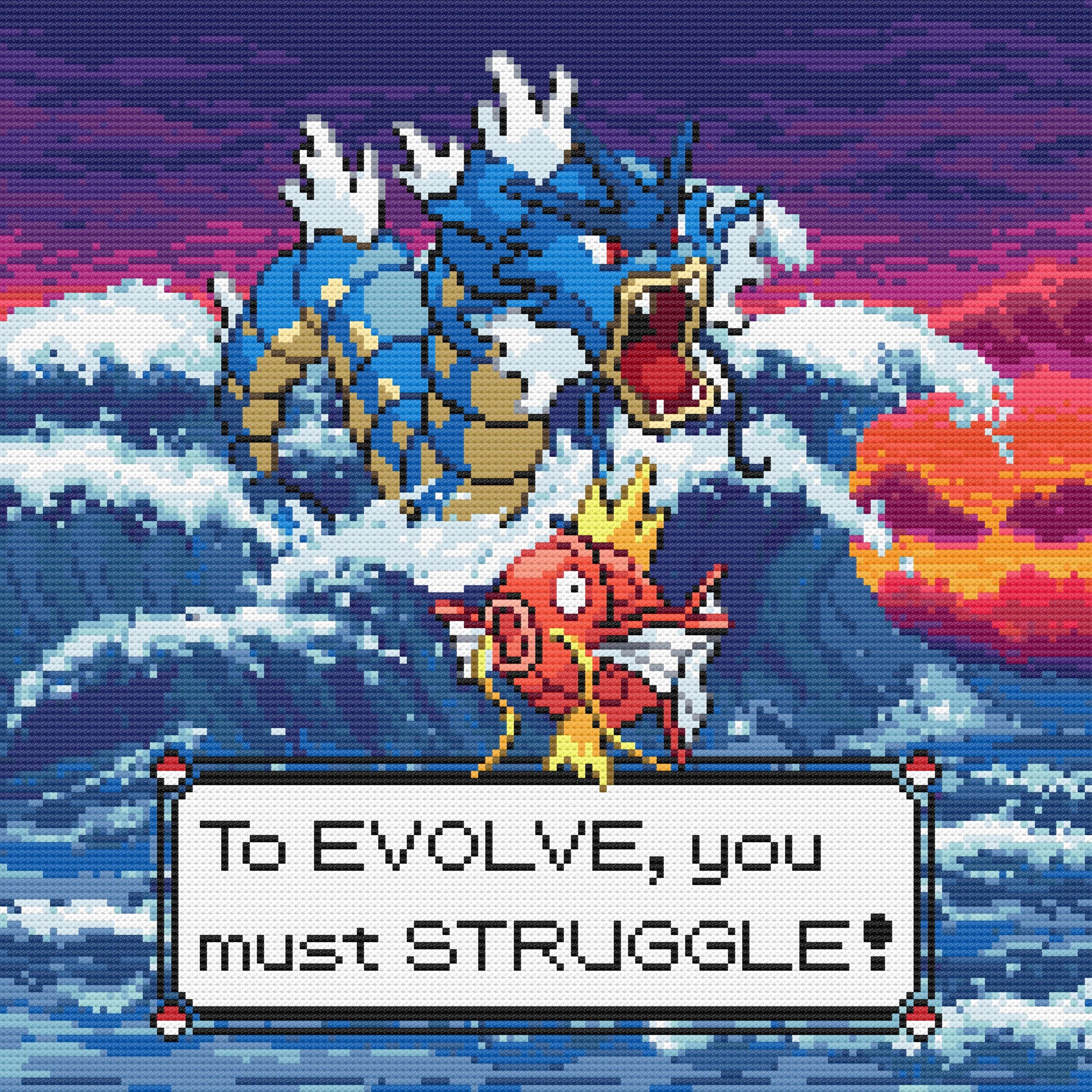 This pattern was made on commission and I'm excited to sell it in my shop! The text is accurate to the original Pokemon games. :) This piece is designed to be 11x11 inches on 14ct aida. This meaningful Pokemon inspired cross stitch pattern captures the spirit of recovery. Featuring the thoughtful quote "To EVOLVE, you must STRUGGLE!" this design resonates with gamers, Pokemon fans, and anyone embarking on a new chapter in life. The modern cross stitch pattern combines nostalgic Nintendo gaming elements with an inspirational message that speaks to personal growth and new adventures. Whether you're looking for a unique gamer gift, a supportive message for someone in recovery, or just love meaningful Pokemon-themed decor, this geeky cross stitch pattern creates a powerful piece of handmade art. The clean, contemporary design appeals to both video game enthusiasts and those seeking inspiration for their personal journey.